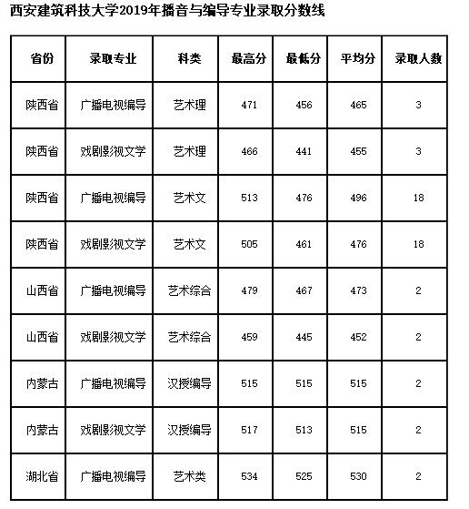 西安建筑科技大學(xué)編導(dǎo)專業(yè)2019年分?jǐn)?shù)線