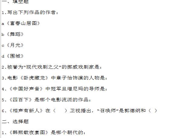 本題包含文學(xué)常識(shí)、藝術(shù)..