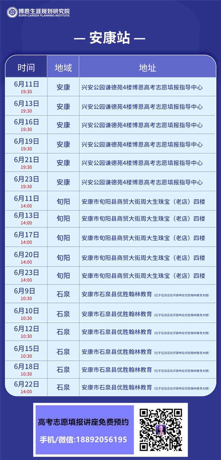 6月11日 19:30 安康 興安公園謙德苑4樓博恩高考志愿填報(bào)指導(dǎo)中心