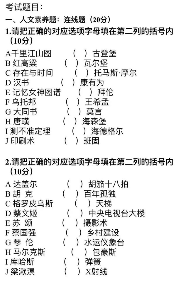 考試題目: