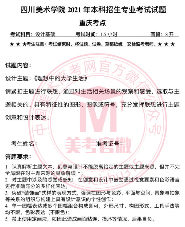 四川美術(shù)學(xué)院2021年重慶考點??颊骖}