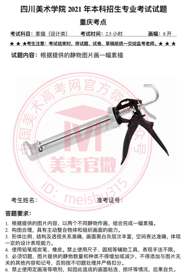 試題內(nèi)容:根據(jù)提供的靜物圖片畫一幅素描,圖片內(nèi)容為一把膠槍