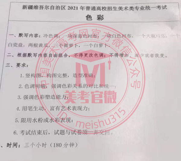 2021年新疆美術統(tǒng)考(聯(lián)考)考題
