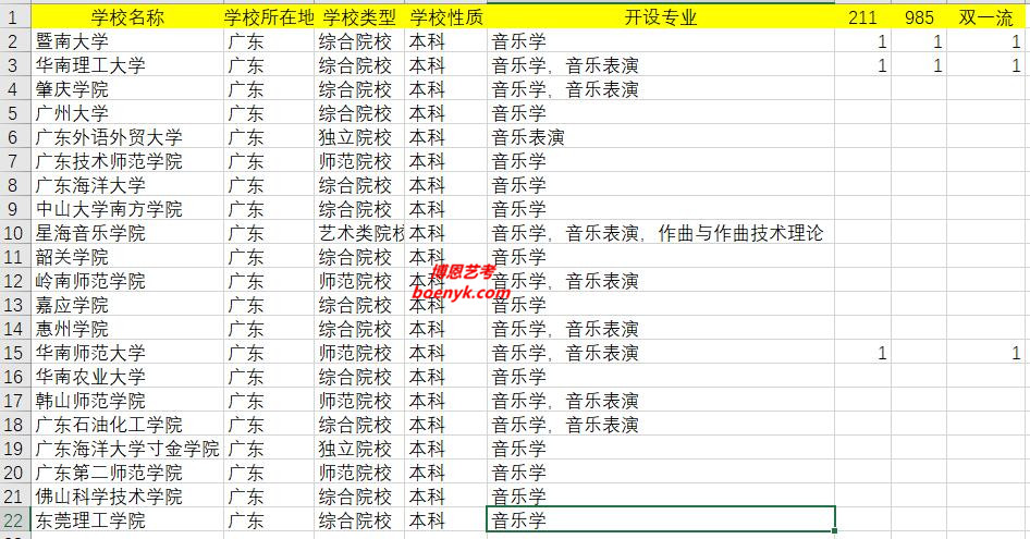 本文由博恩藝考為大家介紹廣東開設(shè)音樂類專業(yè)院校,一共21所大學(xué)。