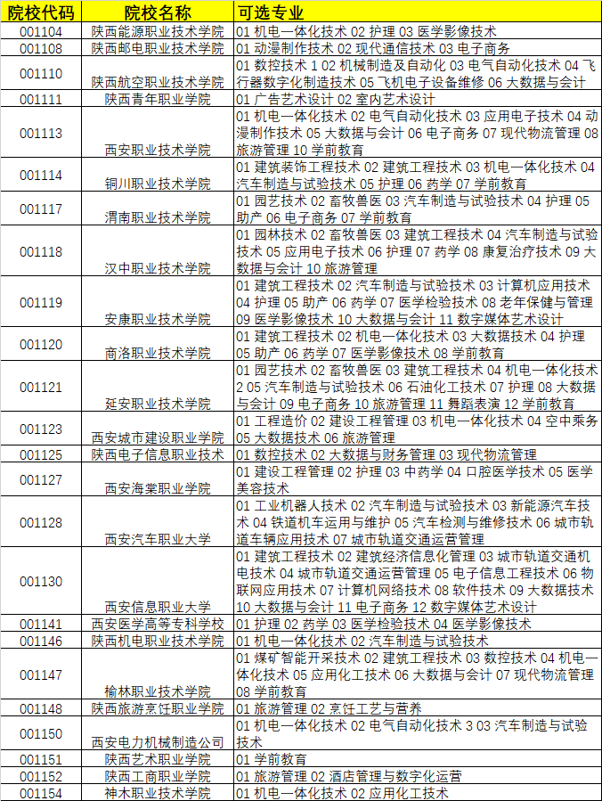 陜西省3+2各院校開設(shè)專業(yè)大全 以下學(xué)校招生,學(xué)生學(xué)習(xí)時(shí)間為5年:其..