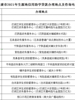 安康市2021年生源地信用助學(xué)貸款辦理地點(diǎn)及咨詢電話市(縣)區(qū) 辦..